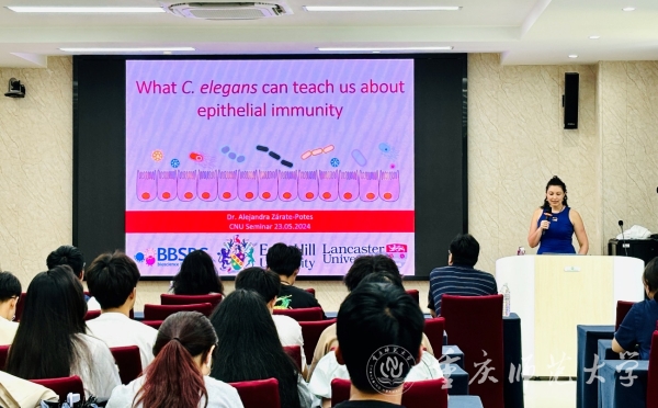 5月23日下午,英国知山大学Alejandra Zarate Potes博士受拉斯维加斯官网生命科学学院邀请,在逸夫楼409室作题为“What C. elegans can teach us about epithelial immunity”的学术报告。生命科学学院副院长张涛主持讲座,学院师生代表100余人参加。