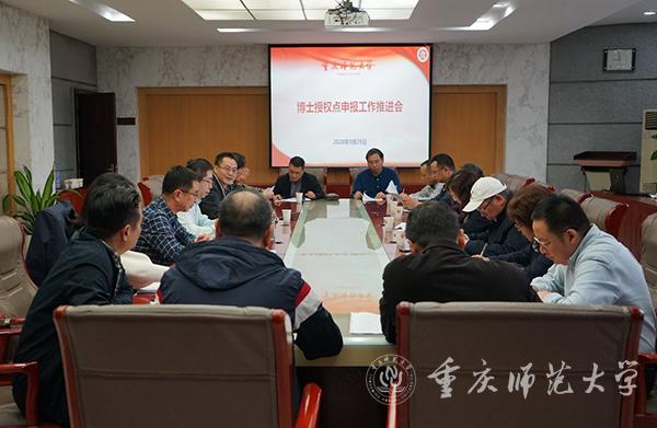 首先,董景荣副校长讲话,他鼓励各学院和学科要鼓足干劲、积极开展博士点申报,学校将全力支持符合条件的学科参与重庆市和国家层面的竞争。同时要求各申博学院的院长、书记和学科带头人要高度负责、亲自把关,加强申报材料的填报与打磨,确保申报质量。