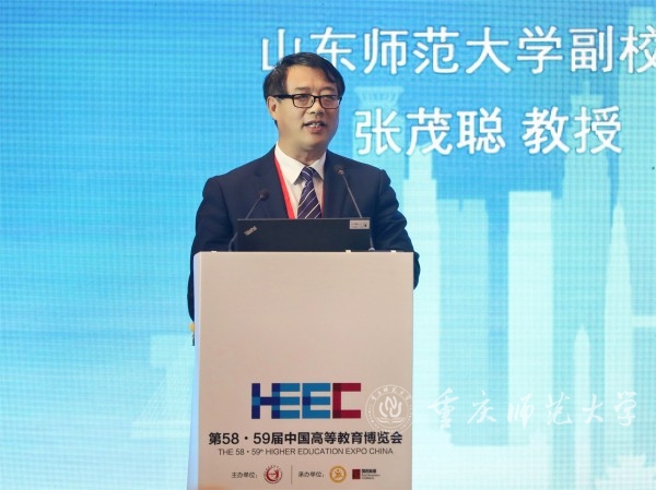 山东师范大学副校长张茂聪以“教育智能数字化时代教师发展”为题,介绍了高校教师发展的新时代愿景、教育智能数字化时代的教师发展新诉求、其中面临的挑战与应对以及高校教师发展路径。他提出,数字化是世界范围内教育转型的重要方向和载体,教育智能时代教师应立足教学素养、专业素养、学习促进三大提升维度,提升自身数字素养,探索混合式教学新模式,适应技术促变下的教育发展。