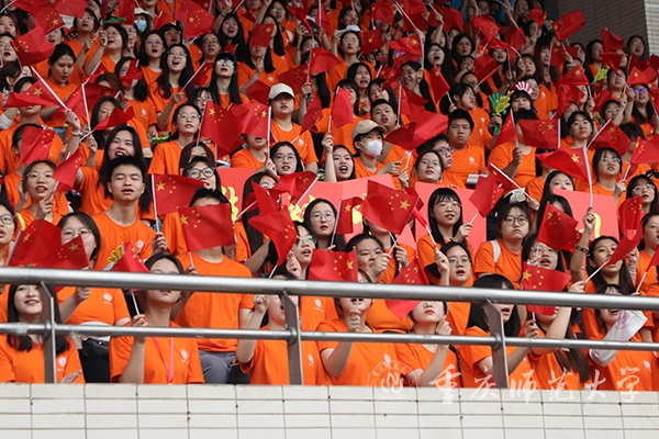 运动场内热情洋溢,喝彩连连。伴随着阵阵鼓点和《运动员进行曲》,国旗护卫队、校旗队、彩旗队和标语方队迈着矫健的步伐依次进入会场,走过主席台。27个风格各异的方阵,27支满腔热忱的队伍。