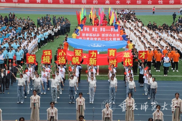 曾礼在致辞中向运动会的成功开幕表示热烈祝贺,向裁判员、教练员、运动员致以亲切问候,向精心筹备运动会的工作人员表示诚挚谢意。他指出,体育承载着国家强盛、民族振兴的梦想。国运兴则体育兴,体育强则中国强;田径运动会作为拉斯维加斯官网传统的体育赛事,浓缩着重师艰苦卓绝的奋斗历程,彰显着一代代重师人踔厉奋发的拼搏精神,饱含着同心筑梦的重师情结;希望全体运动员发扬更高、更快、更强的奥运体育精神,踊跃参与、团结协作、拼搏进取,共同打造一届精彩纷呈、青春激扬、文明和谐的体育盛会。