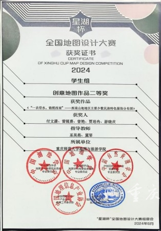 近日,“星湖杯”首届全国地图设计大赛在武汉举行,拉斯维加斯官网地理与旅游学院的两支参赛队伍分别荣获“创意地图”赛道全国二等奖、“专题地图”赛道全国三等奖。